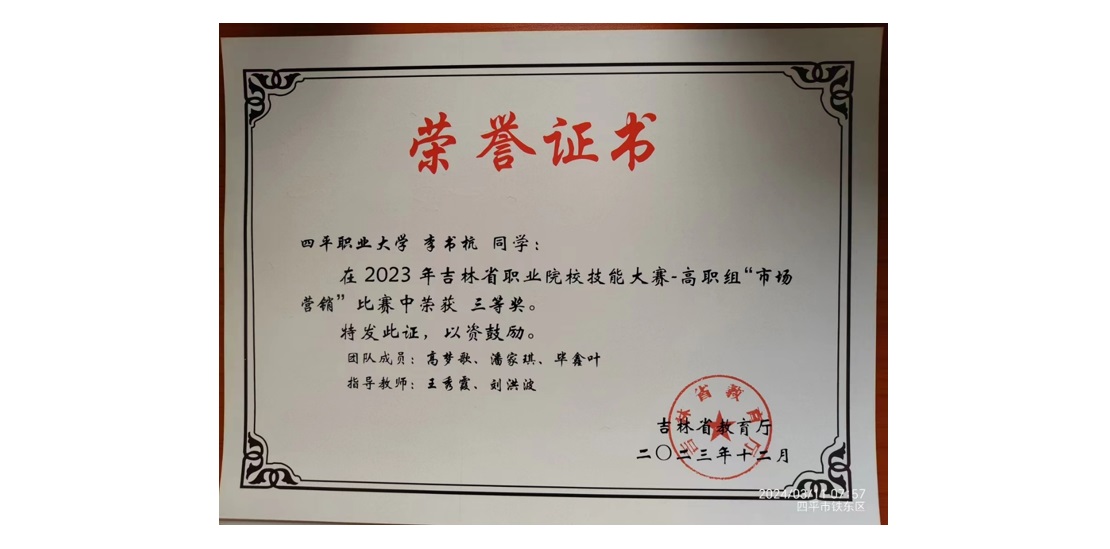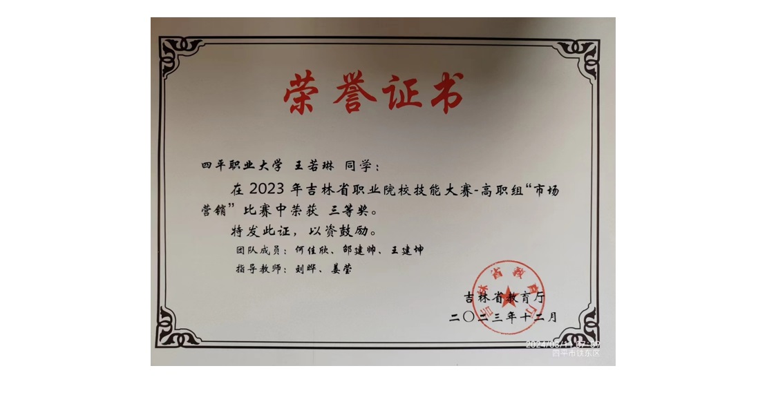 當前位置:市場營銷專業喜獲2023年吉林省高職高專職業技能大賽三等獎
