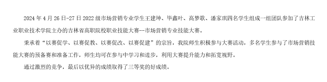 當(dāng)前位置:市場(chǎng)營(yíng)銷專業(yè)喜獲2024年吉林省高職高專職業(yè)技能大賽三等獎(jiǎng)