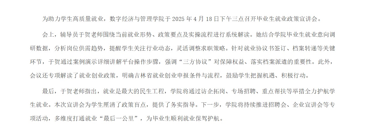 數字經濟與管理學院召開就業(yè)政策宣講會