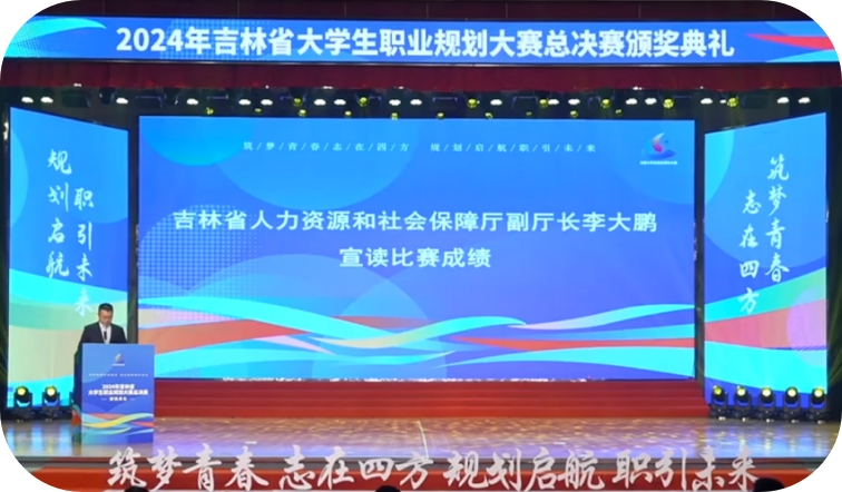 在吉林省大學生職業規劃大賽頒獎典禮上,吉林省教育廳副廳長劉學軍講話中指出,“你們立足專業,放眼多元領域,從科技創新前沿,到鄉村振興一線,從文化傳承陣地,到社會服務末端,體現了對社會需求的洞察。”長春理工大學黨委副書記劉瑛在講話中表示,要協調聯動形成就業工作合力,把大學生職業規劃大賽進一步辦好、辦出特色、辦出品牌。吉林省人力資源和社會保障廳副廳長李大鵬宣讀了比賽成績,并向獲獎選手及指導教師表示祝賀。