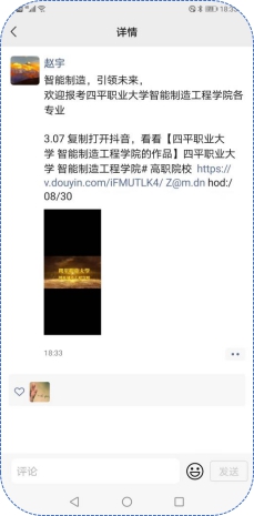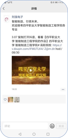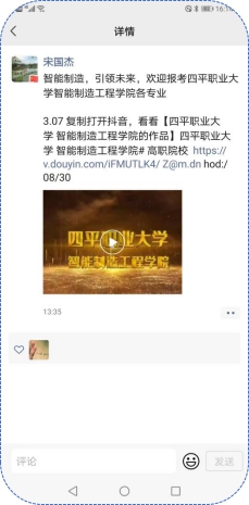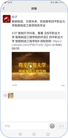 新學(xué)期拉開序幕,為確保2024年學(xué)院單獨招生工作按步驟的順利進行,近日,按照學(xué)校黨委的要求,在智能制造工程學(xué)院趙宇院長的指導(dǎo)下,素有“機電強人”之稱的劉強老師,收集整理了學(xué)院宣傳資料,在最短的時間內(nèi),制作完成了學(xué)院的宣傳小視頻。學(xué)院書記呂英蘭老師第一時間在個人的微信朋友圈里發(fā)布了學(xué)院的宣傳視頻,并得到了師生們的點贊。在學(xué)院領(lǐng)導(dǎo)的帶領(lǐng)下,全院老師紛紛在自己的微信朋友圈、微信視頻號或者抖音短視頻上發(fā)布學(xué)院的宣傳視頻,一時間吸粉無數(shù)。