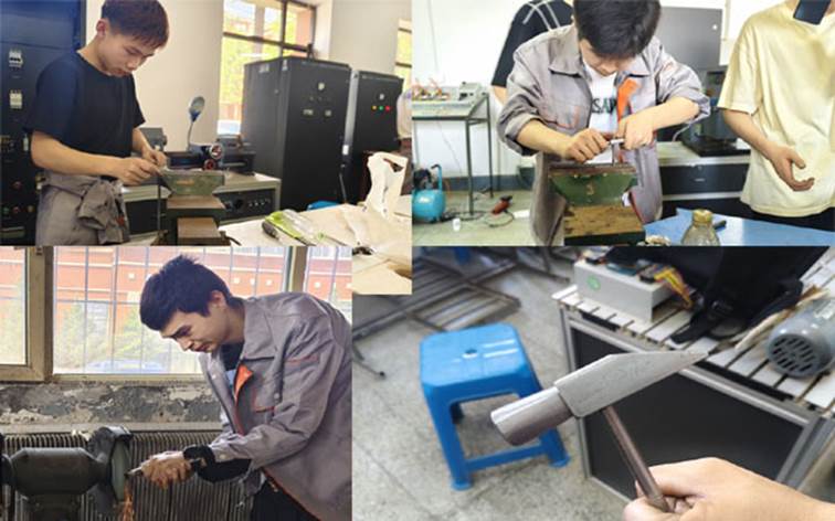在金工實習過程中,學生們被分為若干小組,在指導老師的帶領下,分別參與了車工、鉗工等多個工種的學習與實踐。每個工種的學習都嚴格按照教學計劃進行,從理論講解到實踐操作,再到成果展示與點評,每一個環節都力求做到精益求精。學生們認真聽老師講解,仔細觀看老師操作,虛心向老師請教,不怕苦不怕累。經過不懈的努力和仔細的打磨,最終每個同學都按時制作出精美的錘子成品,得到了指導老師的好評。