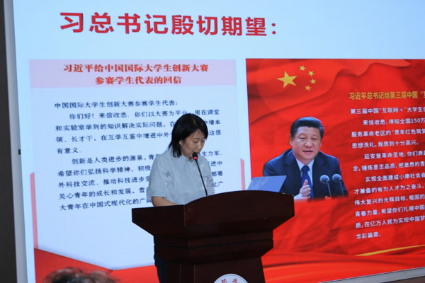 開幕式上,創新創業學院院長程艷卉代表學校致辭。她指出,中國國際大學生創新大賽是面向全球大學生的頂級雙創賽事,是展示我校教育教學改革成果和學子風采的重要平臺,對于培養學生創新精神、創業意識和實踐能力具有重要意義。