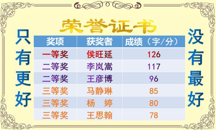 此次漢字錄入大賽的舉行,得到了全體任課教師和同學們的大力支持。通過以賽促練、以賽促學,實現了教學相長,不僅使學生熟練掌握漢字輸入法,提高了錄入漢字的能力,也提高了學生個人的學習和工作效率,樹立了良好的學風氛圍,也發掘了了人才,調動了學生學習的積極性,同時激發了全體學生學習計算機基礎的熱情和技能提升,收到了良好的效果。