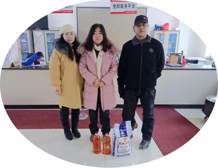 龍年伊始,寒冬情暖。日前,為積極培育和踐行社會主義核心價值觀,傳遞黨的關(guān)懷和溫暖,密切聯(lián)系居民群眾,滿足困難群眾的切身需求,四平職業(yè)大學智能制造工程學院直屬黨支部呂英蘭書記帶領(lǐng)張愛紅老師、劉長國老師、劉天宇老師分別來到鐵東區(qū)富強社區(qū)和金龍社區(qū),幫助廣大困難群眾實現(xiàn)“微心愿”。黨員教師們了解到困難戶家庭情況之后,立即購買了米、面、油和湯圓等生活用品。黨支部書記呂英蘭代表智能制造工程學院直屬黨支部全體黨員教師,向困難群眾發(fā)放節(jié)目用品,并詳細詢問了困難群眾的身體情況、日常生活現(xiàn)狀以及當前存在的困難,并與困難居民建立了包保聯(lián)系。困難群眾激動地說道:“政府和社區(qū)逢年過節(jié)就來看望我們,感謝政府的關(guān)心,謝謝四平職業(yè)大學的老師們!”