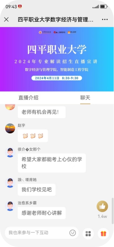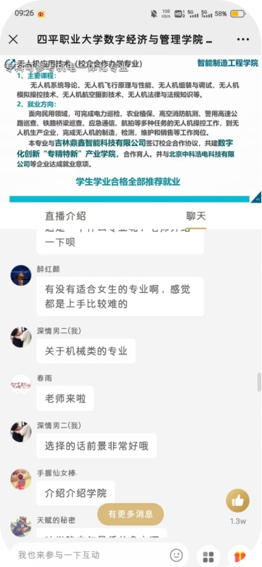 直播時,兩位老師從各個方面介紹了智能制造工程學院,同時,直播老師個人形象和素質言談舉止讓廣大考生和家長眼前一亮,親切的與平臺上的廣大考生和家長進行互動,為考生和家長答疑解惑,大大的吸引了直播間的考生和家長的注意力,直播取得了圓滿的成功。