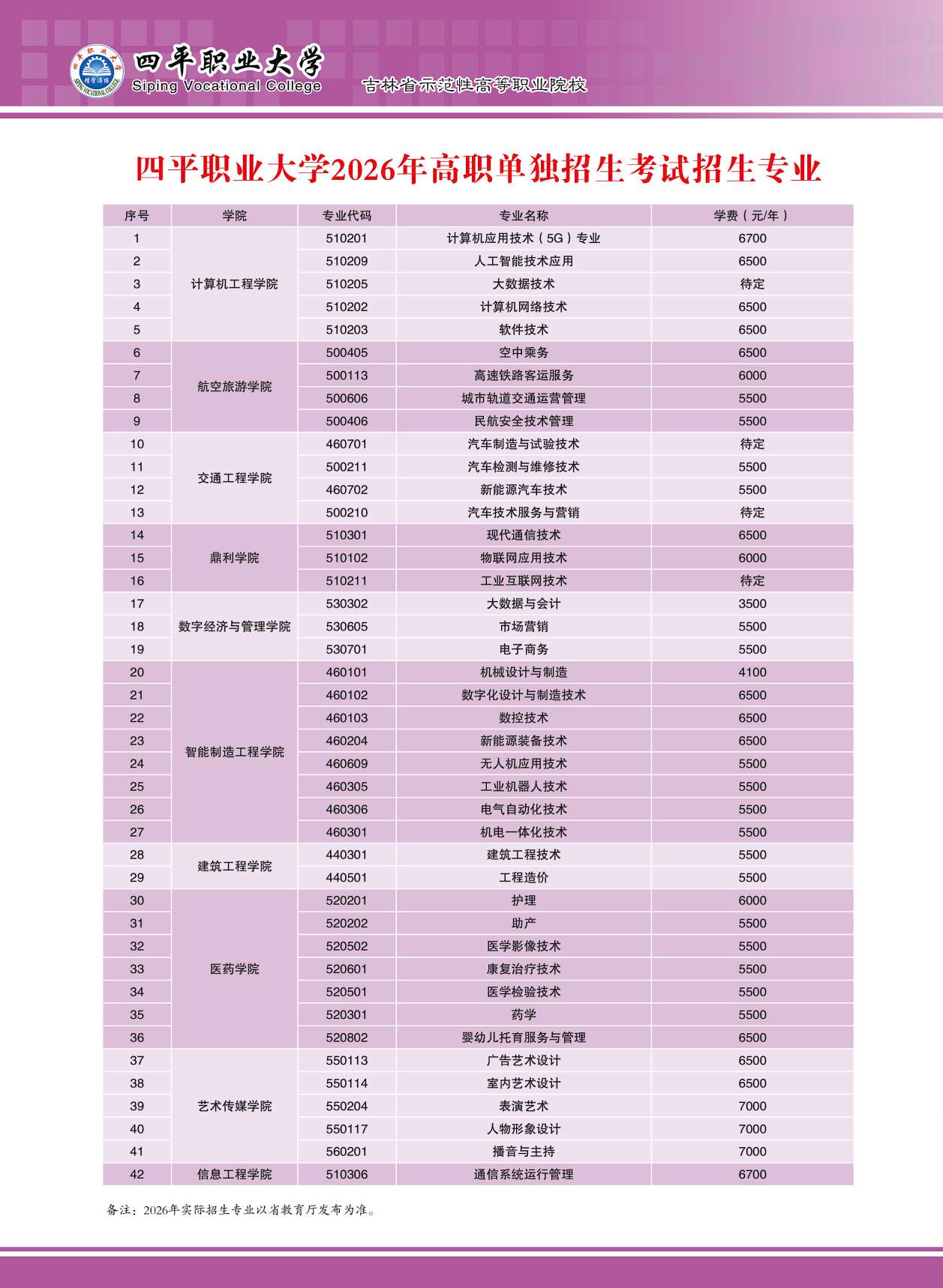 當前位置:報考指南>>>四平職業(yè)大學(xué)2026年高職單獨招生考試專業(yè)